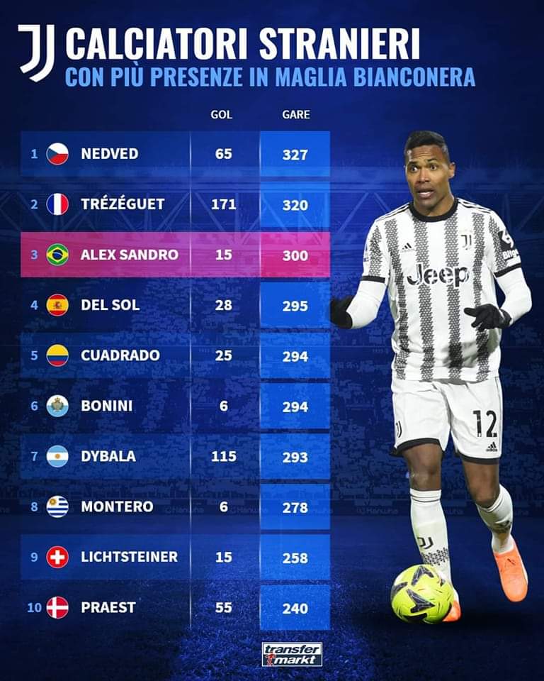 Можно не сомневаться, что Алекс Сандро станет иностранным игроком, с наибольшим количеством матчей в истории «Ювентуса»