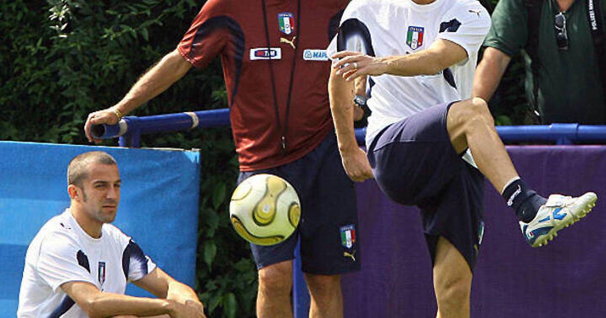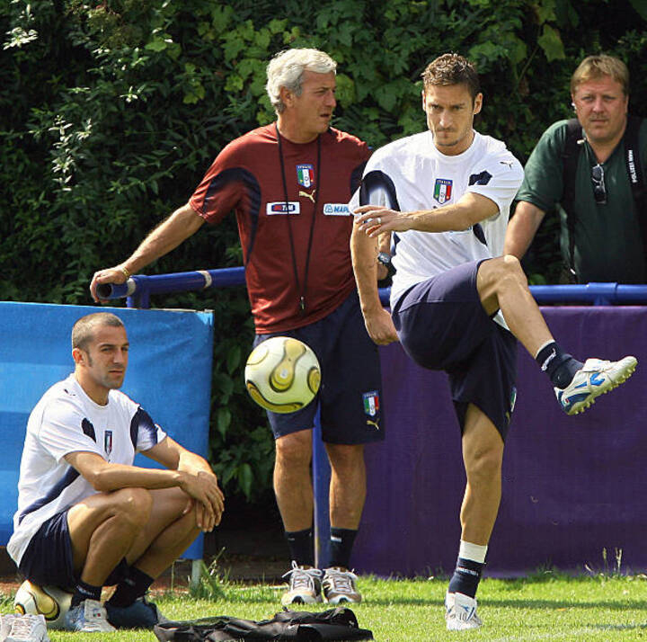 Алессандро Дель Пьеро, Марчелло Липпи и Франческо Тотти во время тренировки накануне финала ЧМ-2006 против Франции