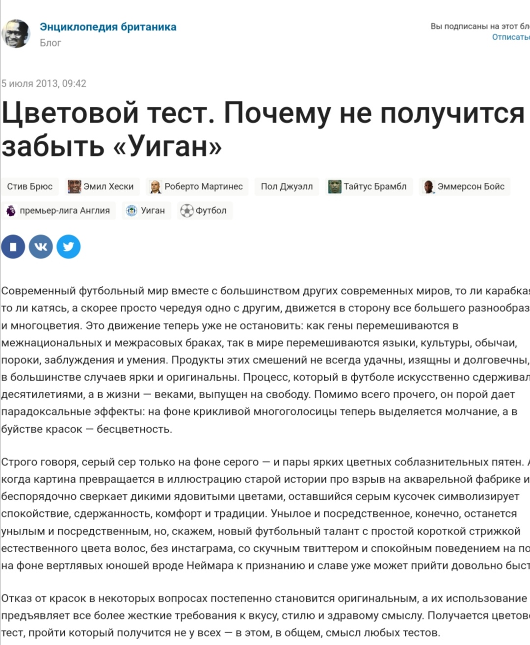 Текст про Уиган. Когда я прочитал начало, я, был поражён. Сейчас так редко, кто пишет.