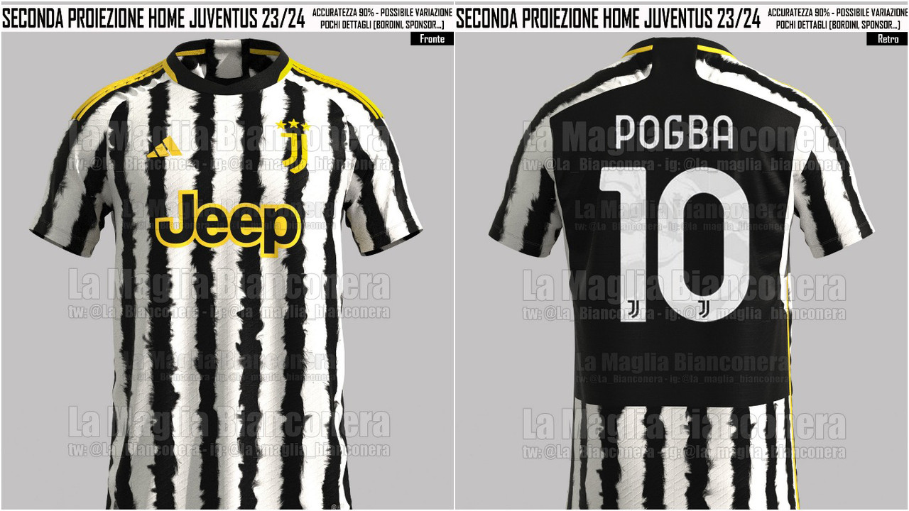 Не совсем прямые полосы, напоминающие шерсть зебры, с желтыми деталями. Воротник может остаться черным или претерпеть изменения, как сообщает специализированный сайт La Maglia Bianconera.
