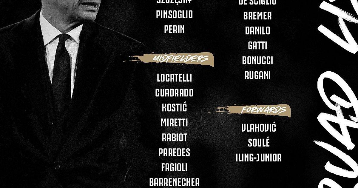 Массимилиано Аллегри назвал имена игроков, вызванных на этот вечерний матч, который начнется в 22:45 по московскому времени.