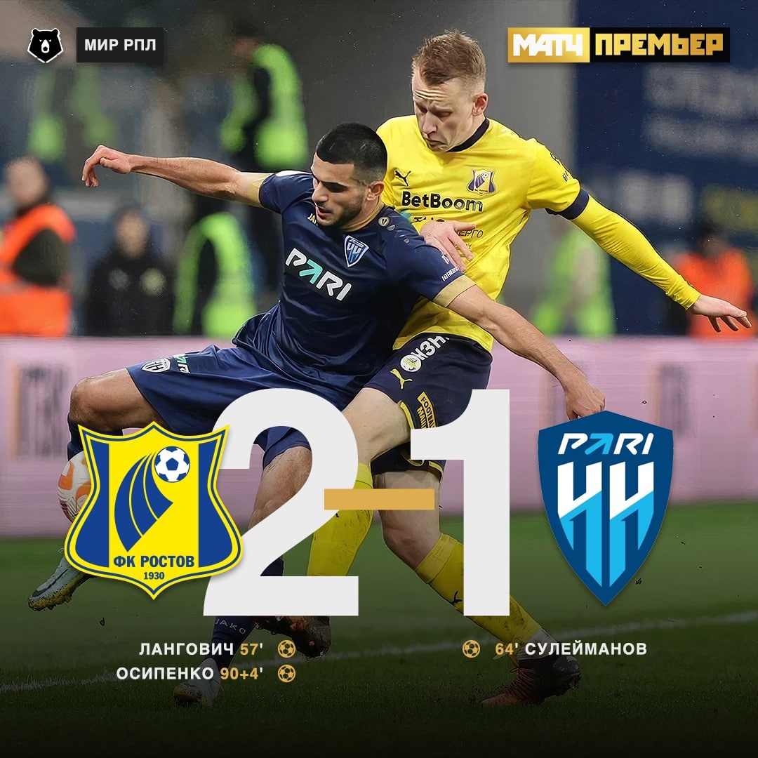 Завершился тур противостоянием на берегу Дона. Суровой развязки с пенальти на 94 минуте могло и не быть, если бы не молодой защитник «Ростова» Мелехин, допустивший грубую ошибку у своих ворот, чем смело воспользовался Сулейманов. Мелехина строго судить не будем, ему всего 19 и чаще он абсолютно надежен, как и его партнер по центру обороны Осипенко. Максим не только капитан, но и оформил в матче гол+пас, став первым защитником с таким достижением в этом сезоне РПЛ. Также Осипенко сегодня установил рекорд «Ростова» в этом сезоне РПЛ по касаниям мяча (111) и стал лучшим в матче по отборам (4). Повышение не за горами.