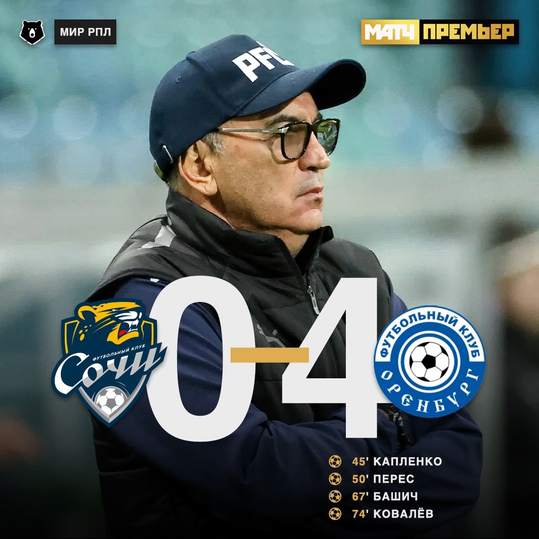 Теперь «Сочи» нужно исправляться в следующем туре с «Факелом» в Воронеже, «Оренбург» же ждет у себя на поле «Спартак», так просто с ними точно не получится.