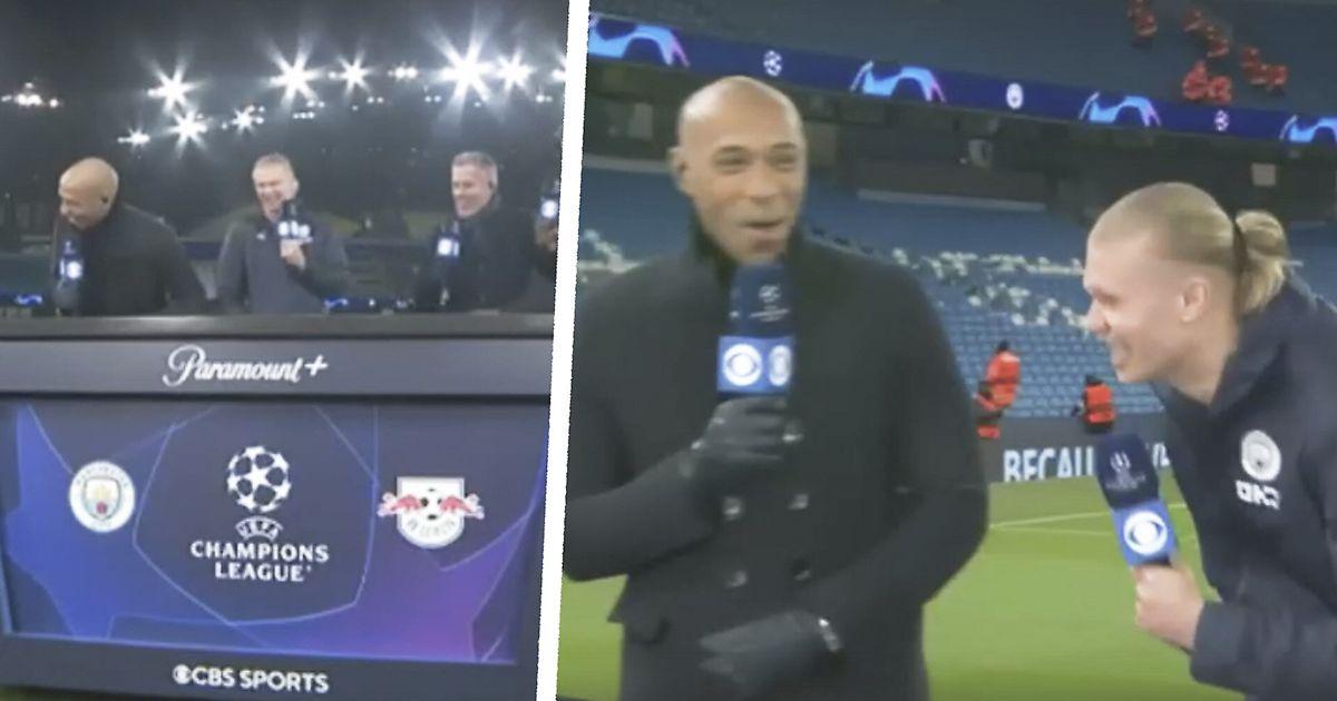 Одним из последних повезло телеканалу CBS Sports. Экспертами на матче «Сити» и «Лейпцига» работала классическая тройка − Тьерри Анри, Джейми Каррагер и Майка Ричардс. Помогала им ведущая Джулс Брич. Холанд, как настоящий джентльмен, поздоровался со всеми, а потом приступил к ответам на вопросы.