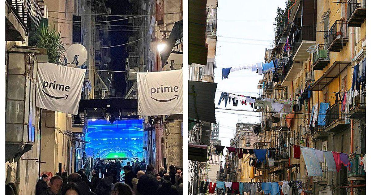 В Неаполе устроили фан-зону в самом криминальном квартале города. Трансляция ЛЧ велась на развешанное белье🥼🩳👚