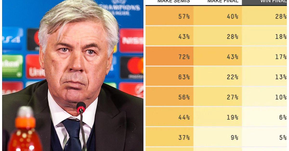 • Хоть суперкомпьютер уверен, что мадридский «Реал» пройдет в полуфинал, ожидается, что они не допрыгнут до финала – проиграют кому-то из пары «Сити» – «Бавария».