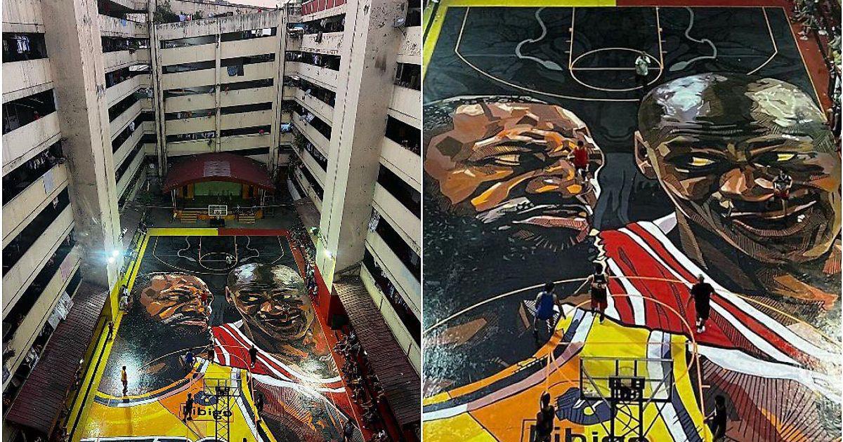 В Филиппинах решили отдать дань уважения легендам баскетбола, нарисовав портреты двух икон НБА - Майкла Джордана и Леброна Джеймса.