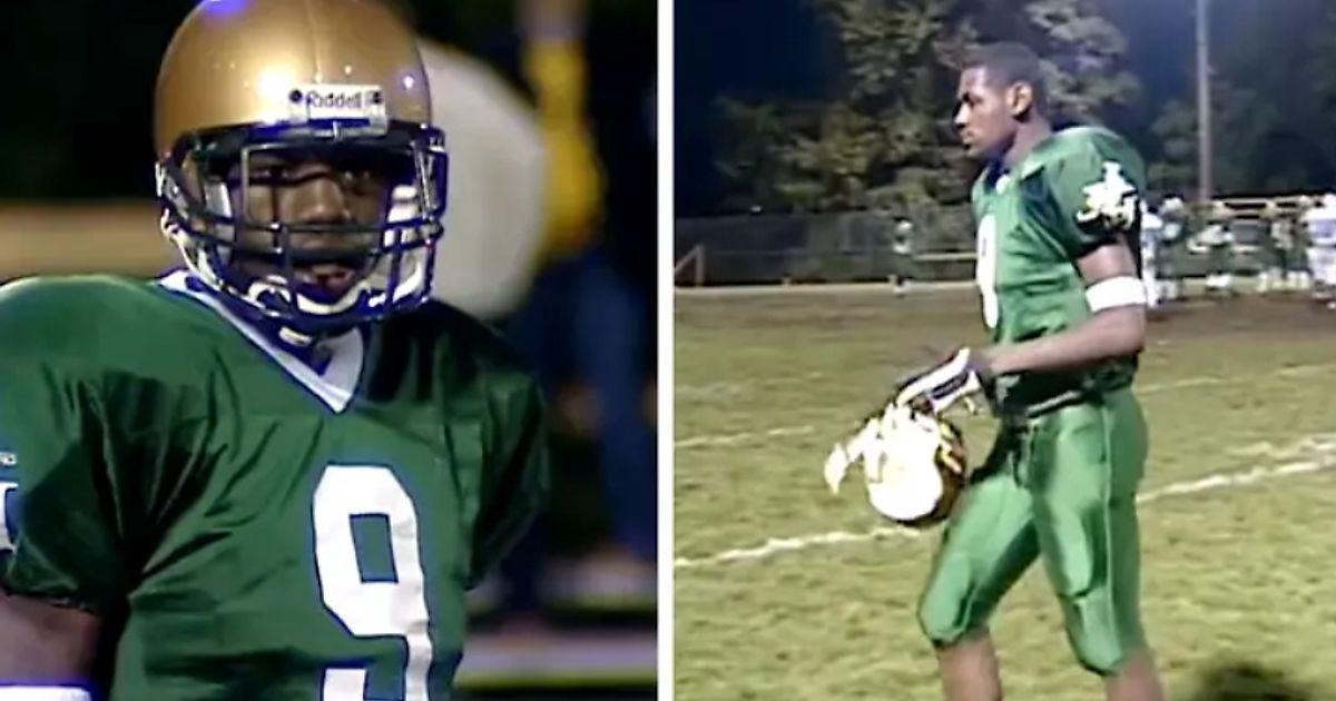 В сети завирусились кадры, на которых великий баскетболист, который тогда был школьником, играет в американский футбол.