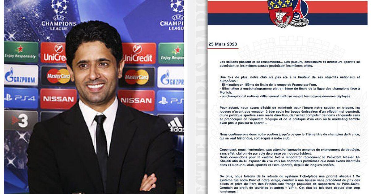 Фанаты «ПСЖ» обратились с открытым письмо к президенту клуба Нассеру Аль-Хелайфи. Их не устраивает то, что в последние годы происходит внутри команды.