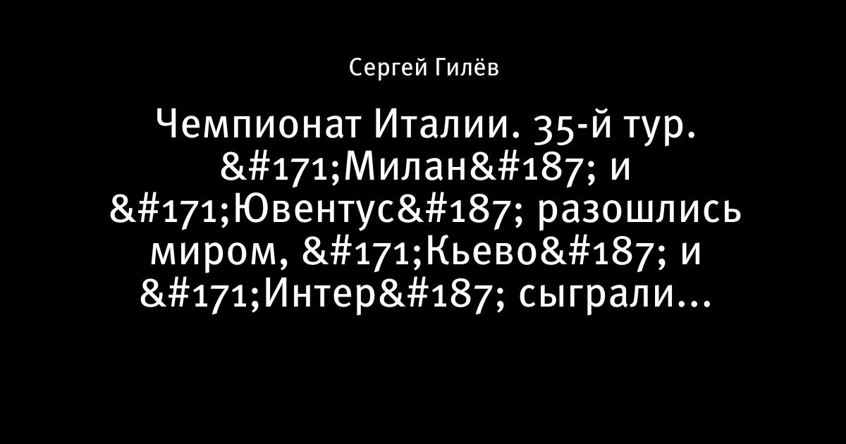 Чемпионат Италии. 35-й тур. «Милан» и «Ювентус» разошлись миром, «Кьево» и «Интер» сыграли вничью