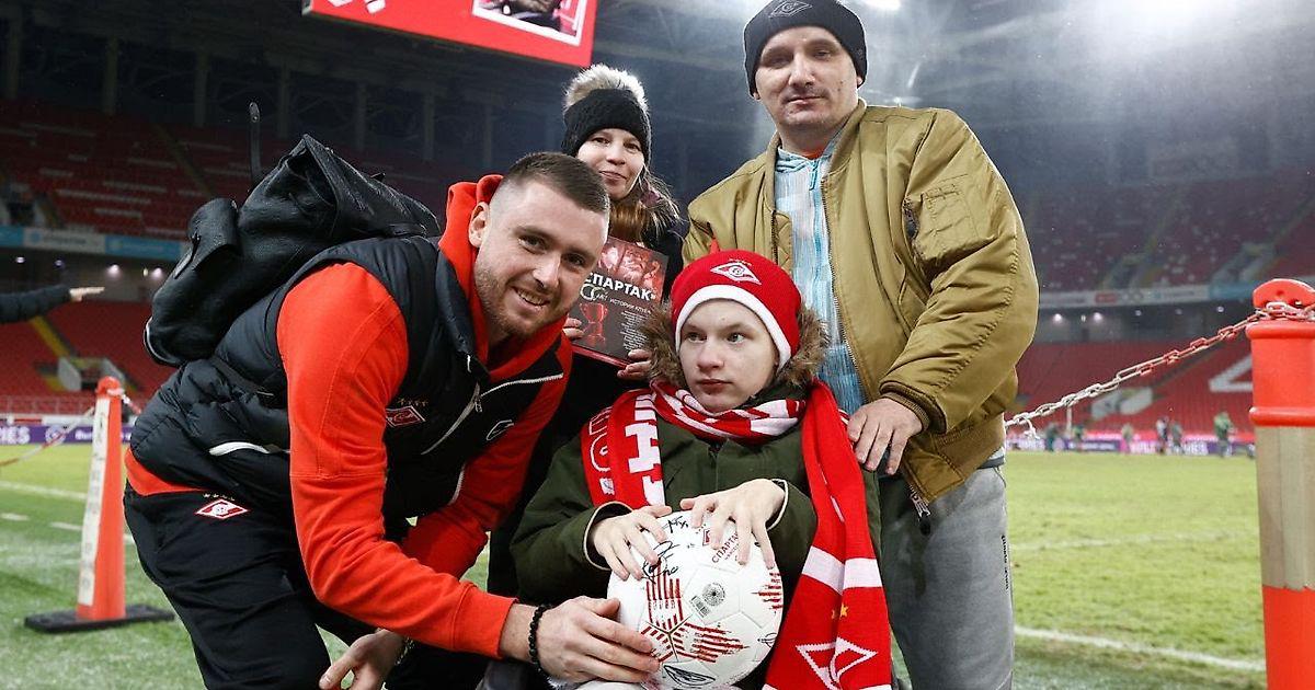 С трибун «Открытие Банк Арены» вместе с мамой и папой Толик гнал команду к победе, а на встречу с любимым игроком, конечно, пришел не с пустыми руками. Он вручил Саше браслеты, которые сделал сам. Александр искренне поблагодарил Толю за такой эксклюзивный подарок и преподнес в ответ мяч с автографами всей команды, а также подписал спартаковский шарф.