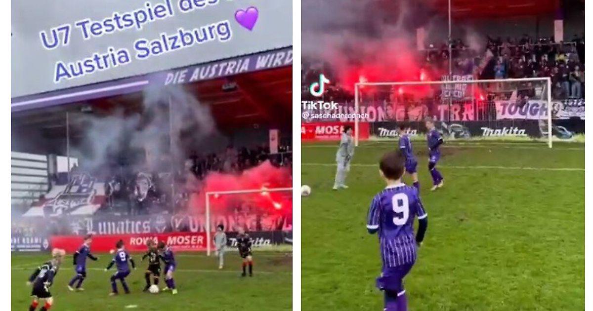 Фанаты «Зальцбурга» устроили детишкам праздник: заполнили трибуны на матче 7-летних мальчишек и устроили настоящий перфоманс🎆🎇🧨