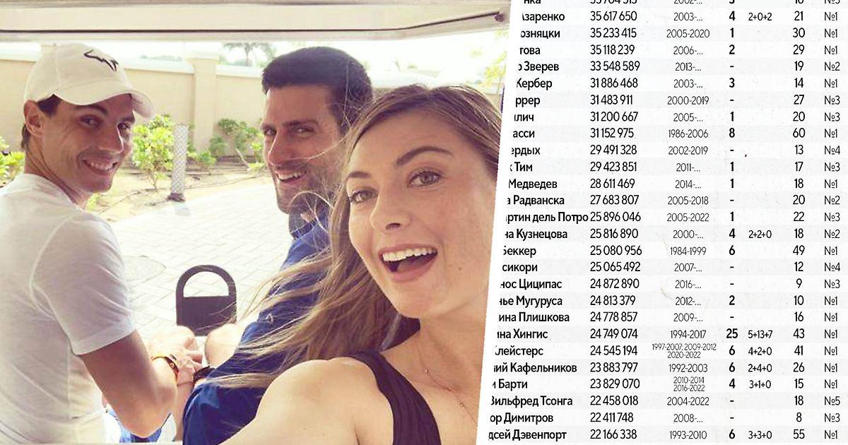 Кто в теннисе заработал больше – Шарапова, Кафельников или Бердых? Сколько женщин в топе? Посчитали с учетом инфляции
