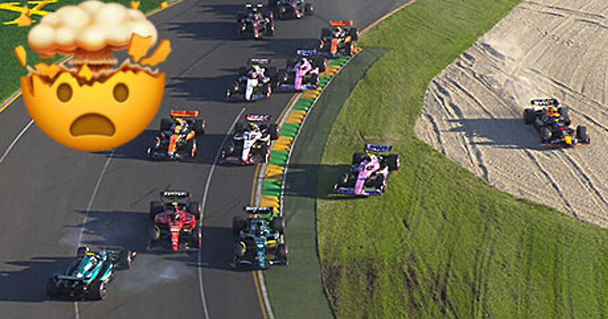 3 аварии, 4 схода 2 вылета в гравий: Сайнс выбил Алонсо (и получил 5 секунд штрафа), Стролл и Перес прокатились за пределами трека, Сарджент вынес де Вриса, Окон и Гасли вынесли друг друга…