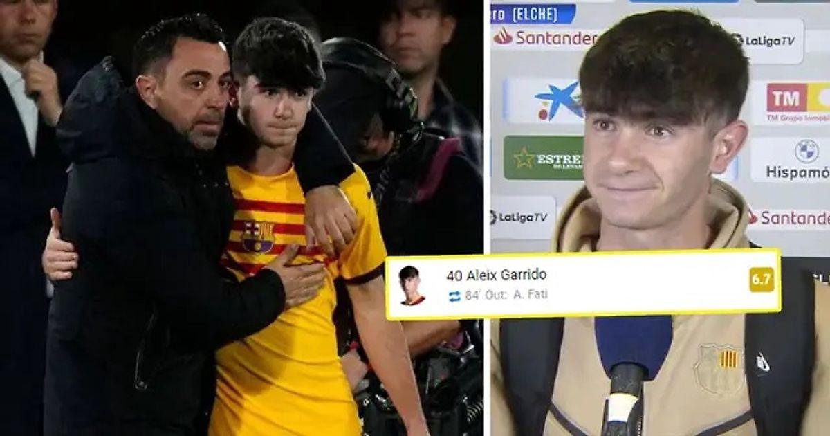 Алеиш Гарридо дебютировал за первую команду «Барселоны» в матче с «Эльче», заменив Ансу Фати на 84-й минуте.