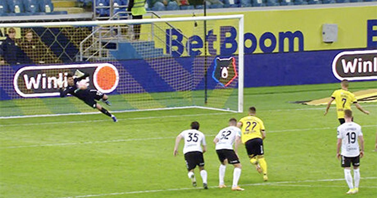 Вот только счет не изменился: Егор Бабурин отразил удар Дмитрия Полоза. «Ростову» пришлось забивать с игры.