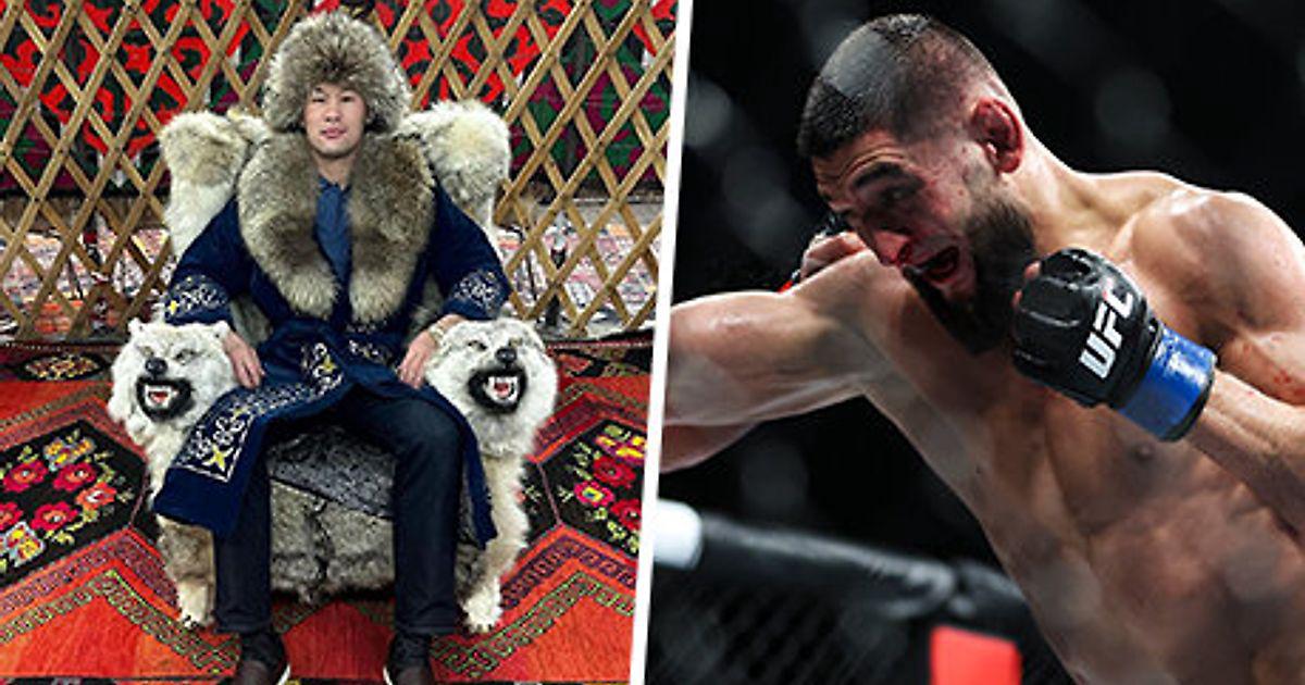 Бойца UFC Шавката Рахмонова чествуют в Казахстане после победы над Джеффом Нилом на UFC 285: в Атырау жители города подарили ему коня и кресло, обтянутое волчьими шкурами.