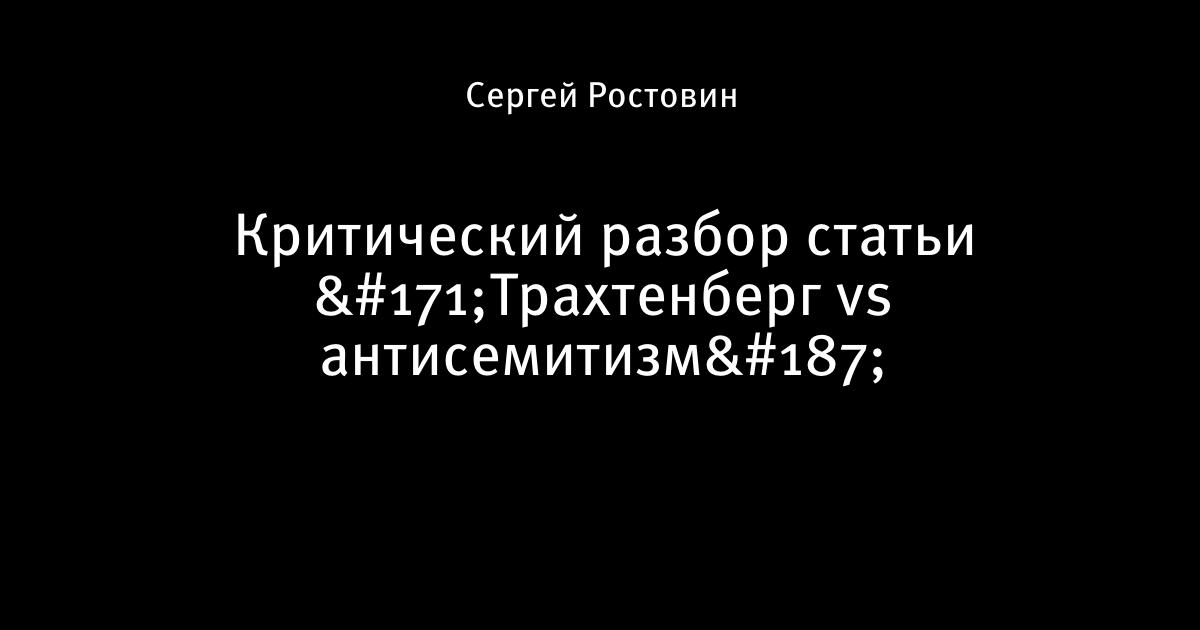Критический разбор статьи «Трахтенберг vs антисемитизм»