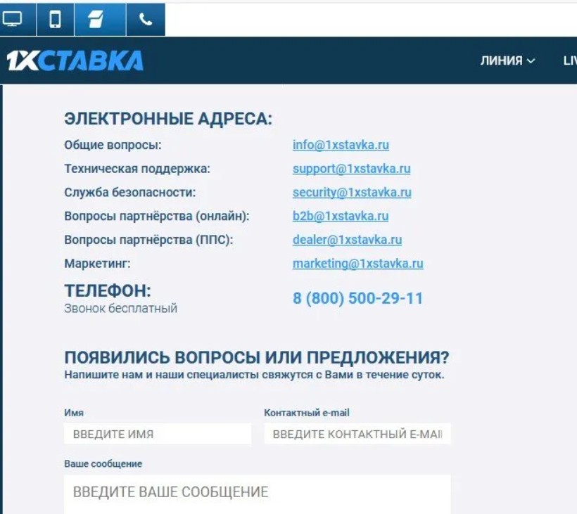 Сразу ответим на главный вопрос – удалить аккаунт в букмекерской конторе 1xstavka без возможности восстановления нельзя. Правила и функционал БК не предполагают такой функции. Теоретически можно обратиться в службу поддержки компании по контактам, указанным на скриншоте ниже, и попросить их полностью стереть вашу личность из базы данных. Но 99% вероятности, что саппорт ответит вам то же самое – удаление аккаунта не предусмотрено.