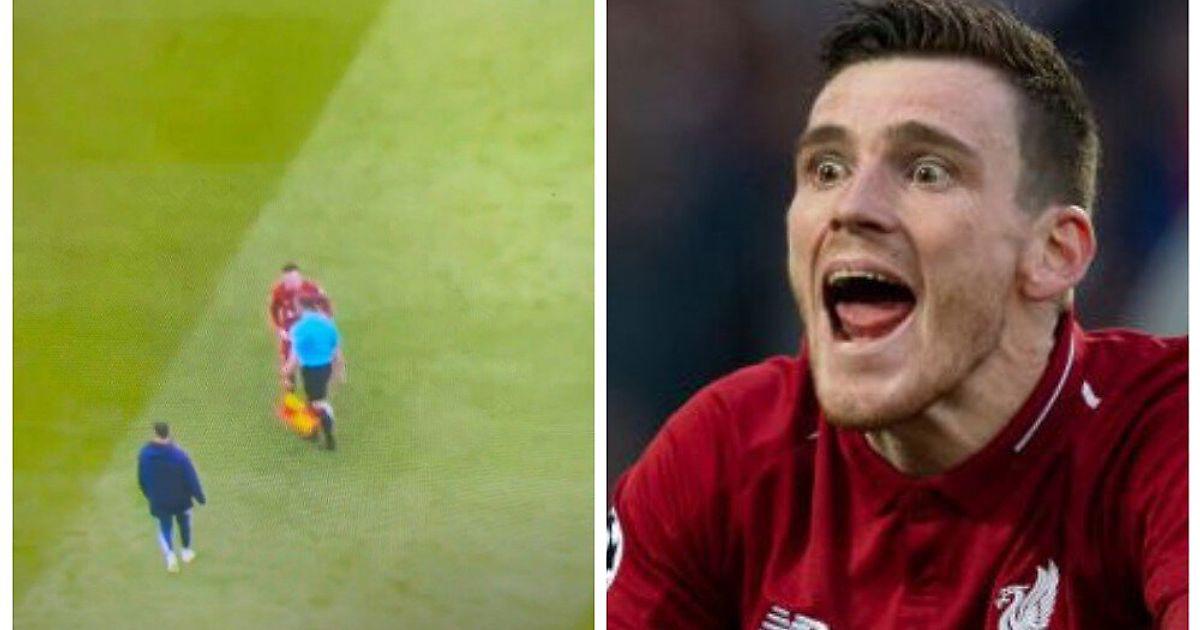 После свистка на перерыв в матче «Ливерпуля» и «Арсенала» у Робертсона появились претензии к лайнсмену Хатцидакису.