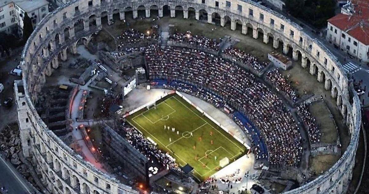Это не фотошоп. Видели фото древнеримской арены, на которой играют в футбол? Это реальные кадры
