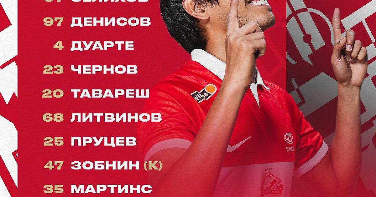 «Спартак»: Селихов, Денисов, Чернов, Дуарте, Тавареш, Литвинов, Пруцев, Зобнин, Мартинс, Игнатов, Бальде