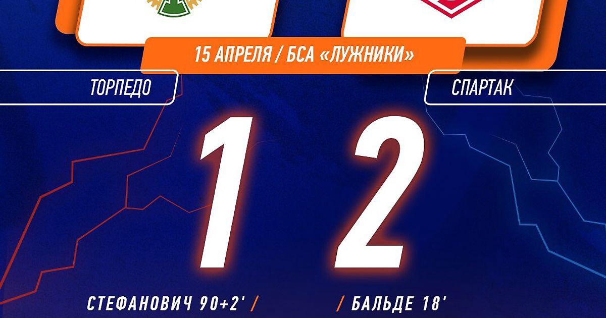 «Спартака» на выезде обыграл «Торпедо» в матче 23-го тура РПЛ — 2:1. Встреча прошла на стадионе «Лужники».