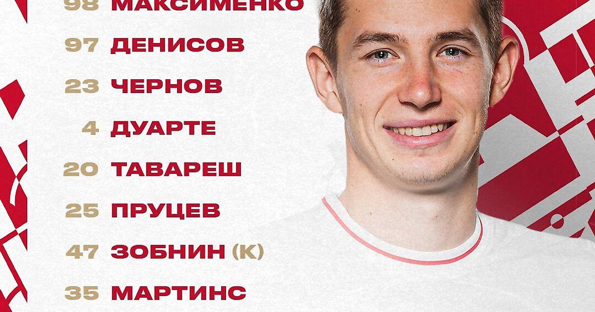 «Спартак»: Максименко, Денисов, Чернов, Дуарте, Тавареш, Пруцев, Зобнин, Мартинс, Игнатов, Зиньковский, Бальде.