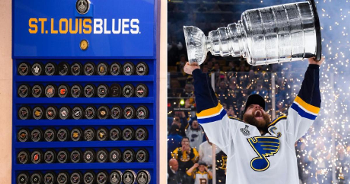 «Каждая из этих шайб рассказывает историю нашего сезона, – говорил тогдашний капитан «Блюз» Алекс Пьетранджело. – Было весело, когда во второй половине сезона эта доска заполнялась после каждой игры. Но в начале сезона смотреть на нее было очень грустно».