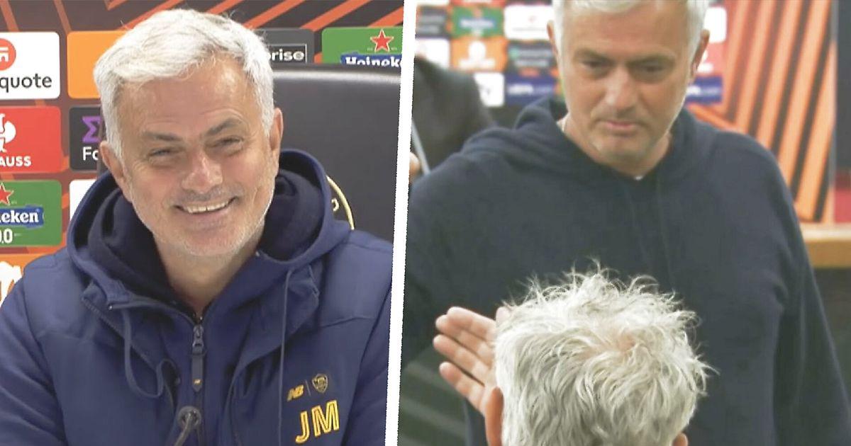 Веселье продолжилось на послематчевой пресс-конференции: когда вопрос задавал журналист из Нидерландов, Моуринью спустился к нему и подарил брелок для ключей в виде маленькой копии трофея Лиги конференций вместе с висящей эмблемой «Ромы».