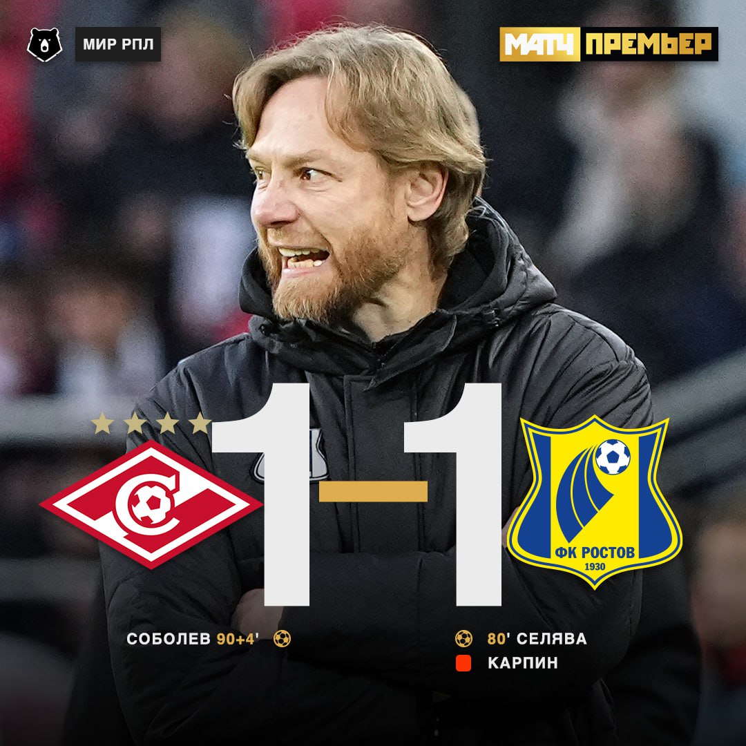 "Спартак" в Москве вырвал ничью в игре 25-го тура РПЛ против "Ростова", 1:1. После матча Карпин направился к Левникову и после первых же фраз увидел перед собой красную карточку. Нецензурно ругаясь Карпин удалился в подтрибунное помещение.