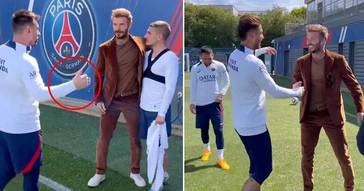 Некоторые болельщики посчитали, что Дэвид Бекхэм проигнорировал Лионеля Месси после того, как две футбольные суперзвезды встретились на тренировочной базе «Пари Сен-Жермен».