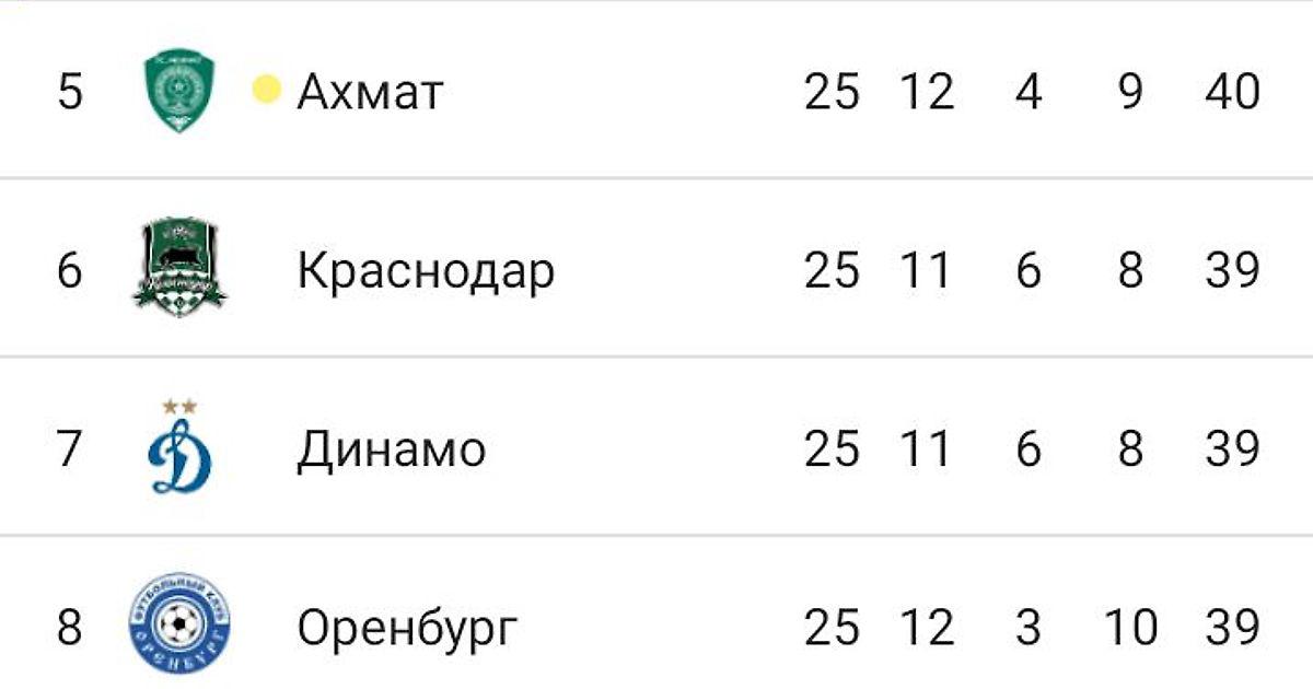 Сезон в РПЛ близится к своему завершению, впереди осталось всего 5 туров. Одной из интриг чемпионата остается борьба за пятое место в турнирной таблице. Если для «Динамо» и «Краснодара» тут вряд ли может быть какая-то принципиальность, то для «Ахмата» пятое место стало бы повторением максимального достижения в истории клуба (в сезоне 2016/2017). «Оренбург» и вовсе никогда не поднимался выше 7-го места (в сезоне 2018/2019).