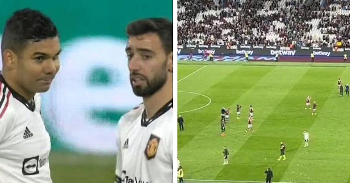 Бруну Фернандеш и Каземиро пообщались на поле после финального свистка матча с «Вест Хэмом», в котором манкунианцы потерпели болезненное поражение со счетом 1:0.