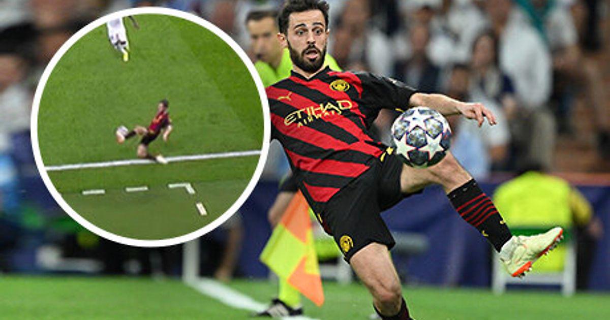 Чуть раньше мяч покинул поле. Бернарду Силва достал его уже за боковой