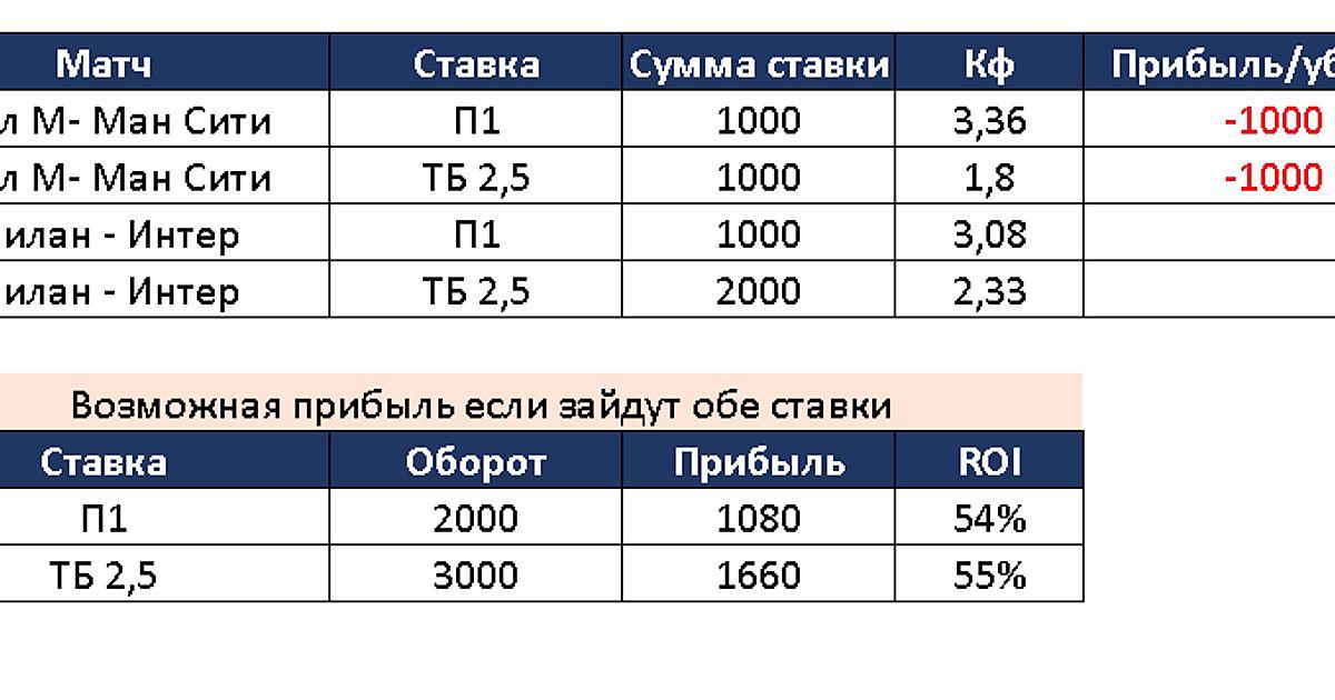 Итого беру на матч Милан - Интер, ставки П1 и ТБ 2,5 по отдельности.