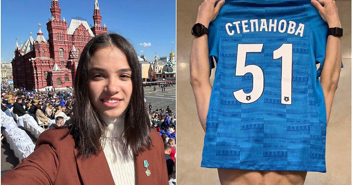ΠΠ΅Π²ΡΡΠΊΠ° Π²ΡΠ»ΠΎΠΆΠΈΠ»Π° Π² ΡΠΎΡΡΠ΅ΡΡΡ ΡΠΎΡΠΎΠ³ΡΠ°ΡΠΈΡ ΠΎΠ³ΠΎΠ»Π΅Π½Π½ΠΎΠΉ ΡΠΏΠΈΠ½Ρ Ρ ΠΏΠΎΠ΄Π½ΡΡΠΎΠΉ Π²Π²Π΅ΡΡ ΡΡΡΠ±ΠΎΠ»ΠΊΠΎΠΉ Β«ΠΠ΅Π½ΠΈΡΠ°Β», Π½Π° ΠΊΠΎΡΠΎΡΠΎΠΉ ΠΊΡΠ°ΡΡΠ΅ΡΡΡ Π΅Π΅ ΡΠ°ΠΌΠΈΠ»ΠΈΡ Π½Π°Π΄ 51-ΠΌ Π½ΠΎΠΌΠ΅ΡΠΎΠΌ.