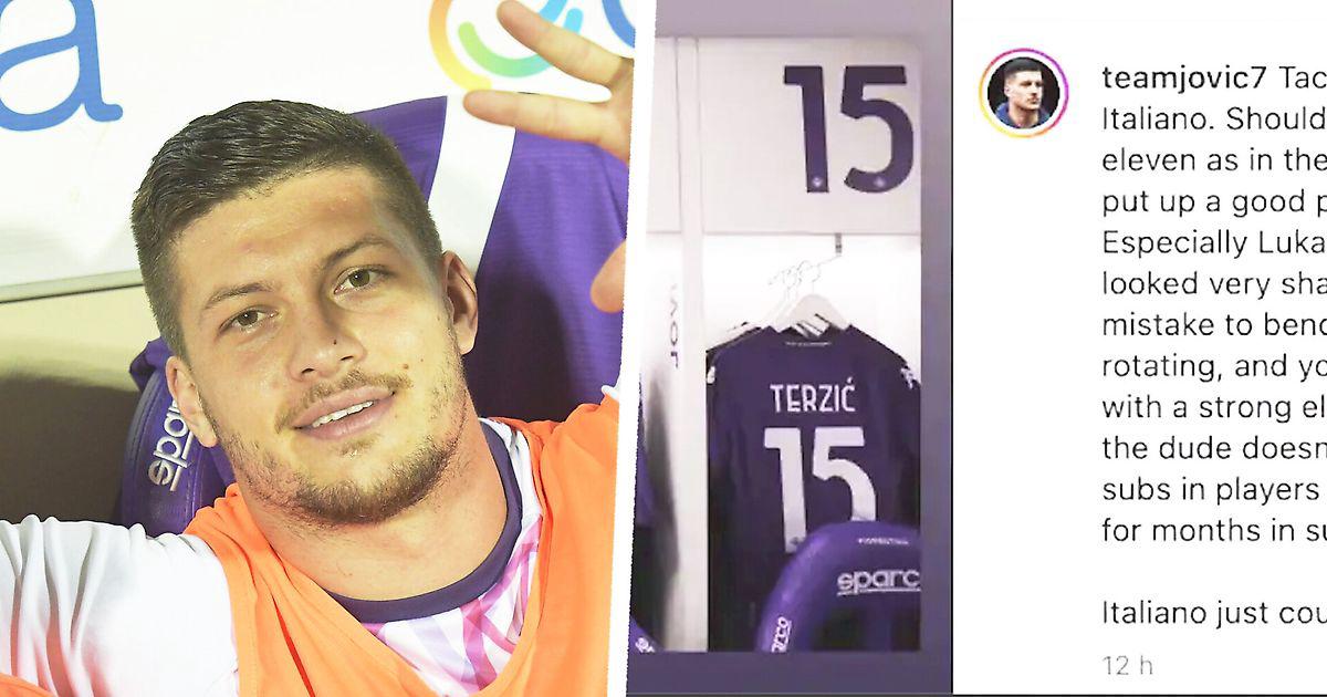 После игры Йович (вышел на замену на 81-й минуте) и Терзич (остался в запасе) репостнули в свои инстаграм-аккаунты пост с фан-страницы Луки с критикой главного тренера «Фиорентины» Винченцо Итальяно.
