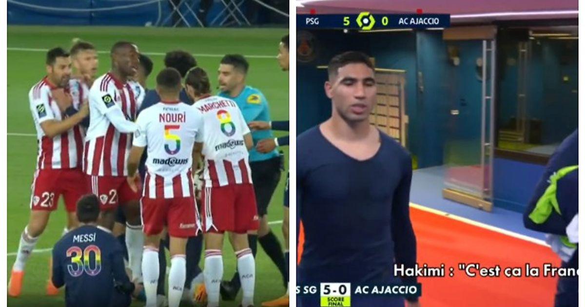 Ашраф Хакими был в ярости после того, как его удалили с поля во время матча «ПСЖ» с «Аяччо», который закончился победой парижан 5:0.