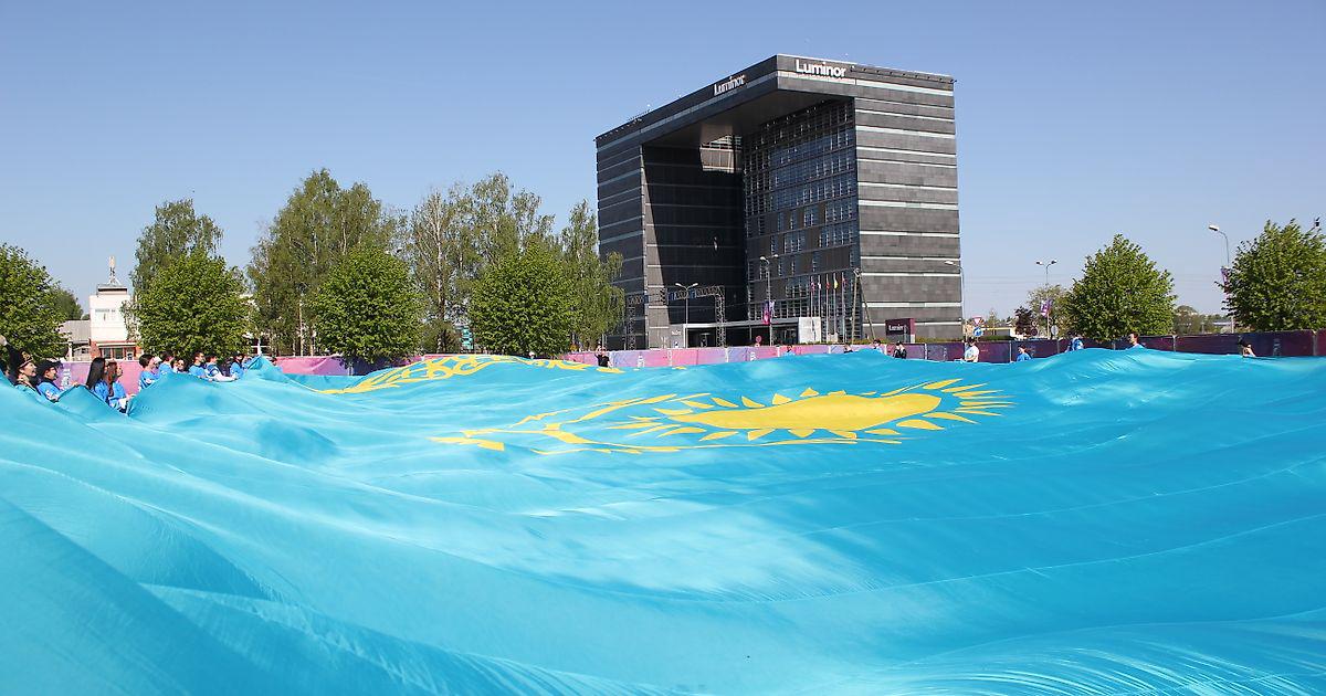 На чемпионате мира в Риге развернули самый большой флаг Казахстана