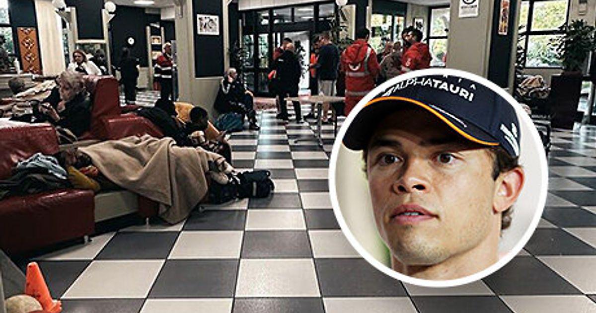 Вечером среды уже после отмены гонки выяснилось: один из пилотов «Альфа Таури» Ник де Врис все прочувствовал на себе! И затопленные дороги, и приют для эвакуированных.