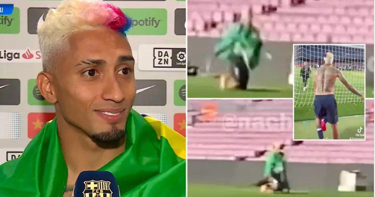 После матча, когда трибуны «Камп Ноу» опустели, Рафинья на коленях прошел по знаменитому газону — видео сразу же завирусилось в сети.