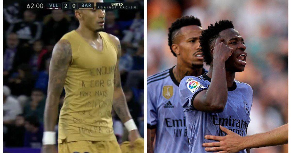 После замены Рафинья снял игровую майку и показал футболку с текстом. На ней были слова поддержки Винисиусу