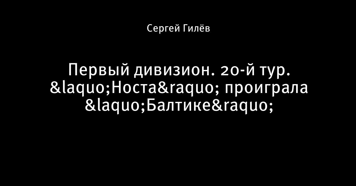 11 июля 2009, 00:48 Первый дивизион. 20-й тур. «Носта» проиграла «Балтике» 9 июля.Носта Балтика 0:1 0:1 С.Егоров (77) Весь матч. Автор Сергей Гилёв Этот пост опубликован в блоге на Трибуне Sports.ru. Присоединяйтесь к крупнейшему сообществу спортивных болельщиков! Другие посты блога Разборки в олимпийском Париже