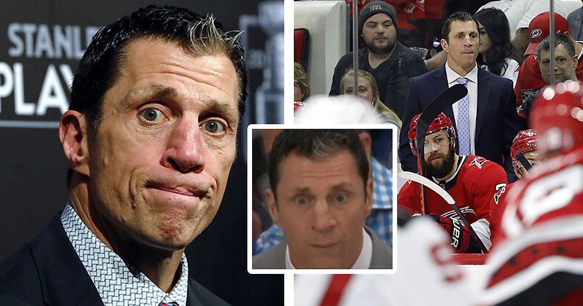 В середине первого периода четвертой игры финала Востока «Флорида» уже вела 2:0 и уходила в отрыв – тут раздался очередной свисток. На секунду всем показалось, что сфолил Ахо – и в этот момент камеры выхватили главного тренера «Харрикейнс».