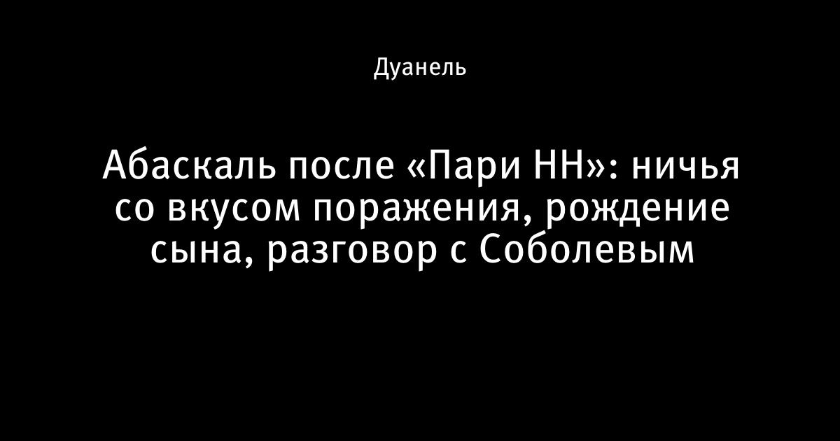 Абаскаль после «Пари НН»: ничья со вкусом поражения, рождение сына, разговор с Соболевым