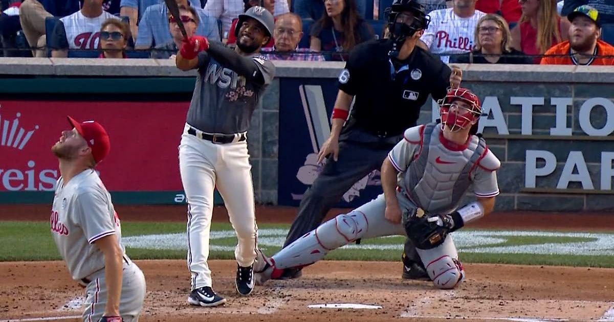 В 6 иннинге Ник Кастельянос своим хоум-раном (7) отправил Брайсона Стотта в дом. Затем Брендон Марш выбил сингл и Тре Тёрнер прибежал в дом.