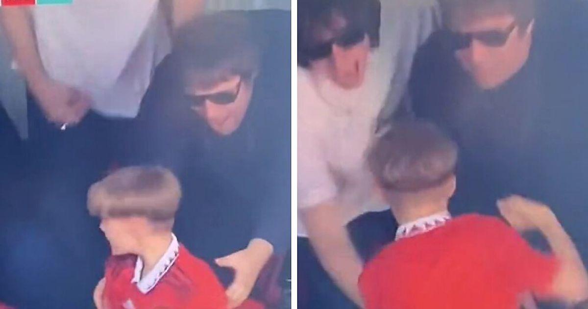 Музыкант наблюдал за игрой вместе с младшим сыном Джином, а после того, как «Сити» вышел вперед, они не могли сдержать свою радость, что привело к забавному эпизоду.