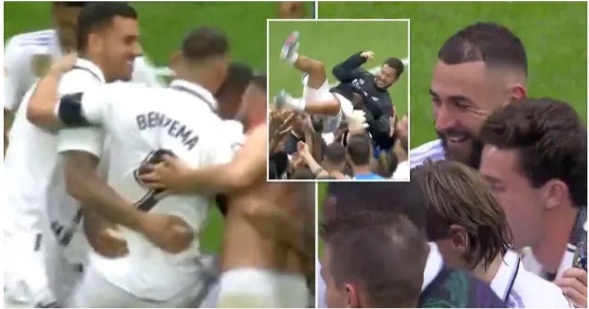 После встречи игроки «Реала» подбежали к растерявшемуся Бензема, подняли его на руки и начали подбрасывать в воздух.