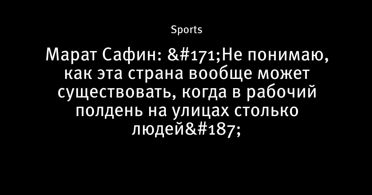 Марат Сафин: «Не понимаю, как эта страна вообще может существовать, когда в рабочий полдень на улицах столько людей»